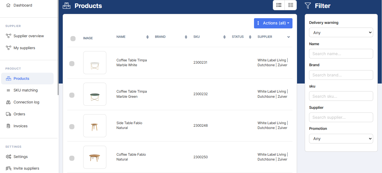 In case you are working with a supplier before joining Droppery and want to match your existing products with Droppery products manually, you can create a .csv or .xml file with the columns “SKU”, “product_id " And "variant_id ».