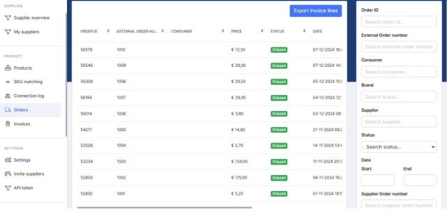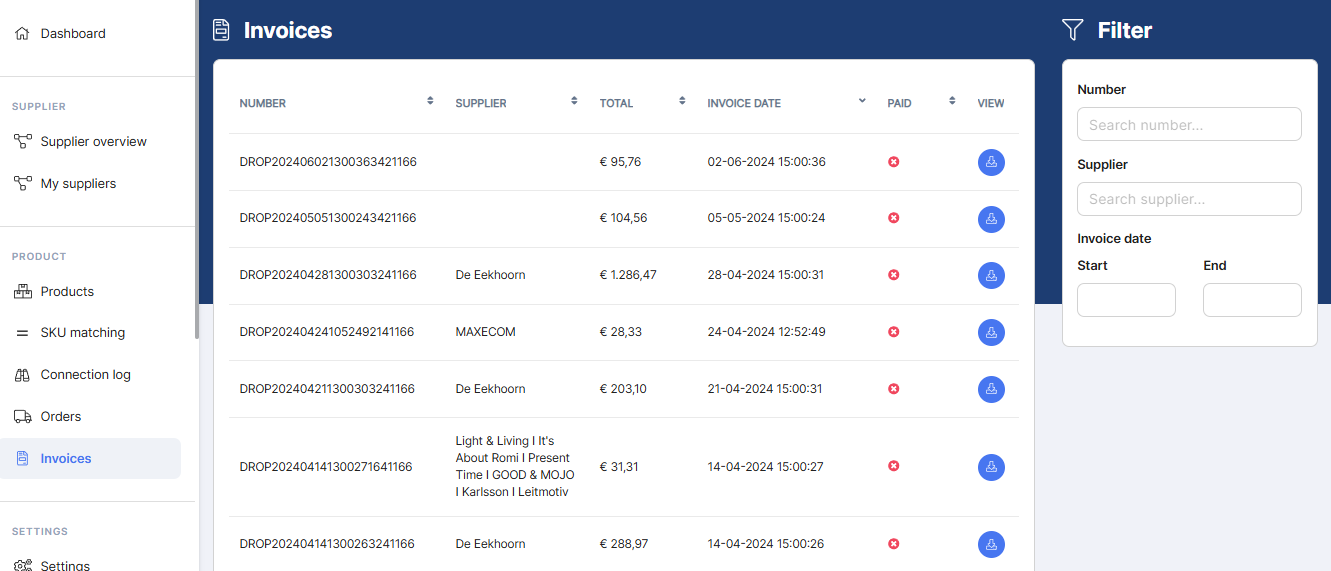 Here you will find the invoices issued by the supplier(s). Depending on the agreement with the supplier, these must be paid manually or are collected automatically. If the invoice are automatic, you will find them in the invoice part.