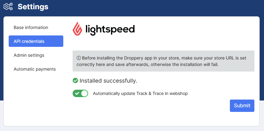 After registering, you can follow these steps to connect your Lighspeed shop to Droppery