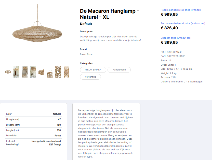 please note that this information may vary according to products and suppliers and that we do not import categories