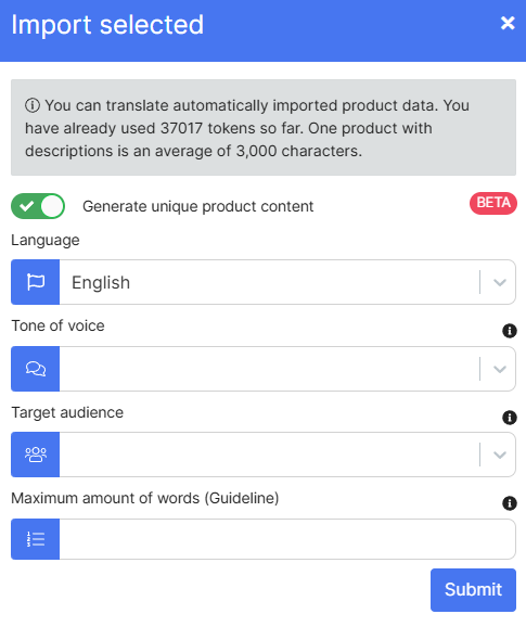 Before importing you can select the importation language. The product sheet will be automatically imported in the language of your choice.