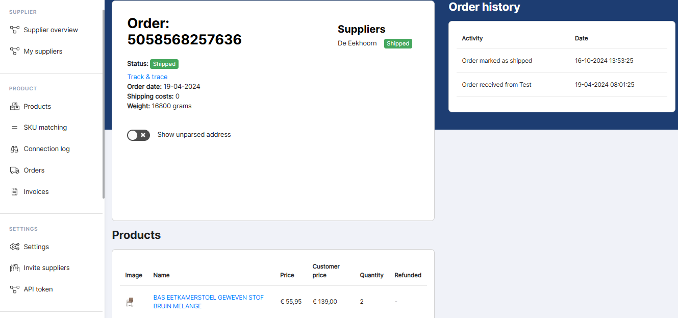When the order is sent, the order tracking link appears and is automatically transmitted to your website, so you always know where the order is.